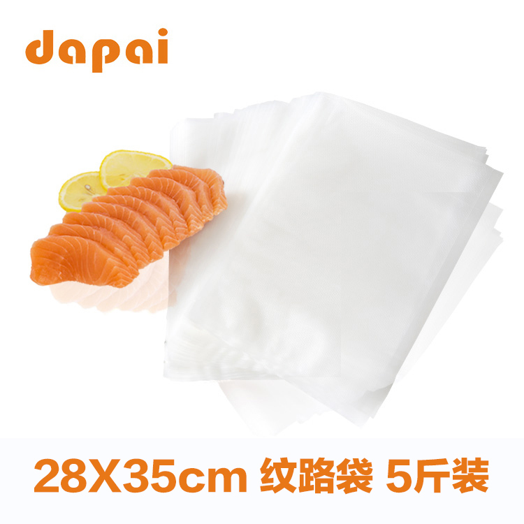 纹路袋袋是一面压纹路,另一面光滑的专业真空保鲜袋,适用于国内外所有真空腔原理抽气的全自动真空真空包装机。