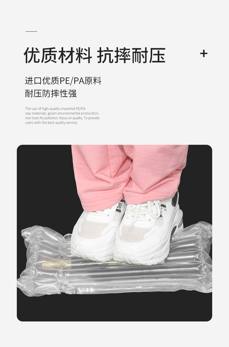 深圳市鼎力盛科技有限公司经过多年的市场调查和技术开发,研发出新型产品【缓冲气柱袋】,该产品使用LDPE或者HDPE为原料, 经过一系列的加工后成型,做成专门适合于缓冲包