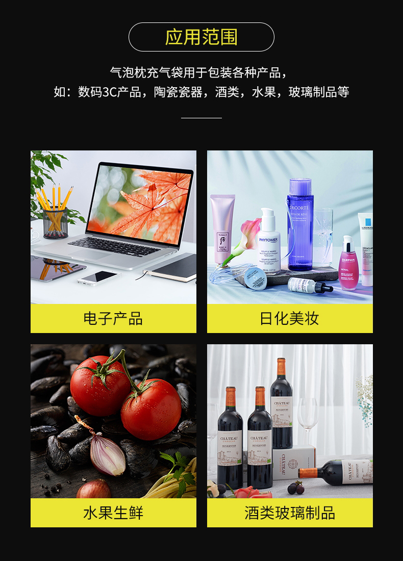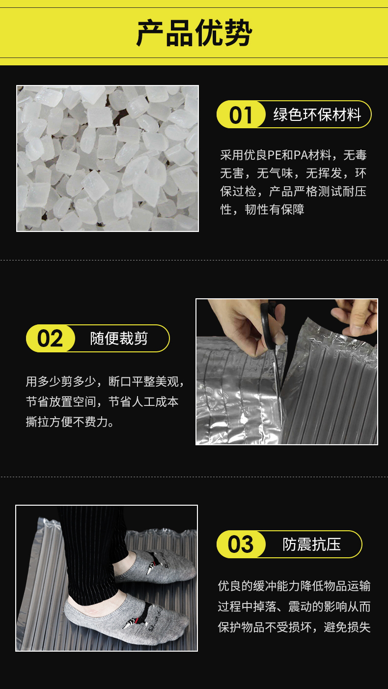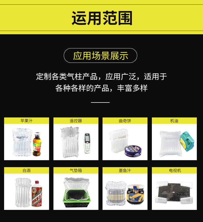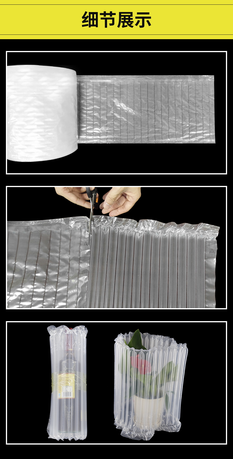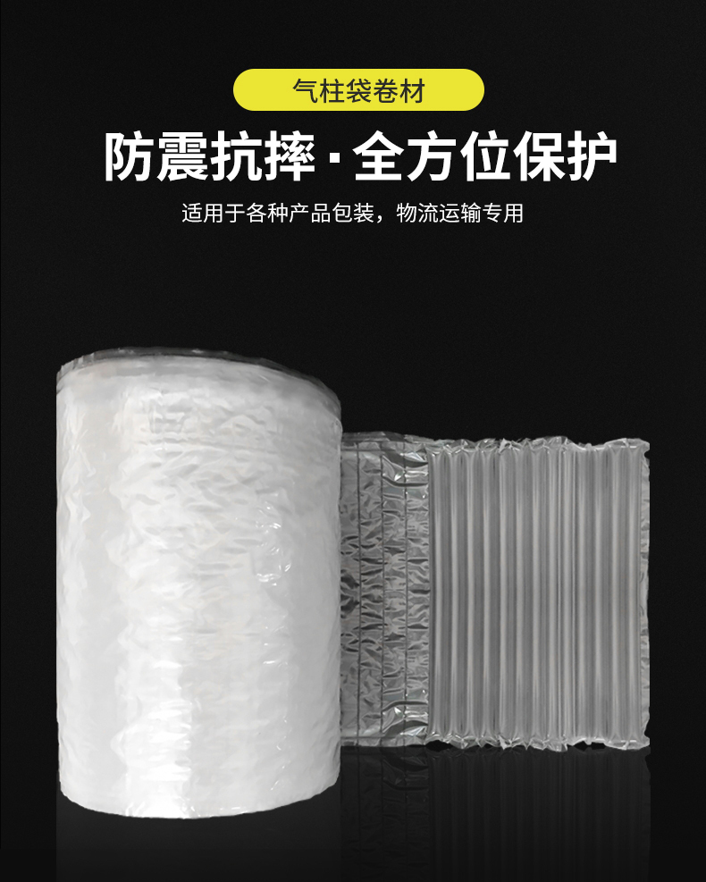 缓冲气柱包材卷气垫卷充气气柱包装气柱卷料袋适用范围很广,只要和包装有关,同时需要运输的产品都可使用气柱袋。