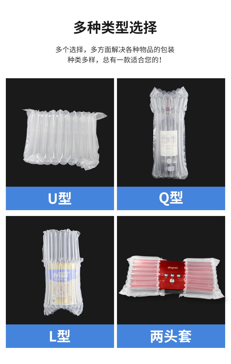 艺的基础上,集多年在包装行业的经验和创新。公司主型产品充气袋、气柱袋、缓冲气垫、胶袋、集装箱充气袋、箱包填充袋