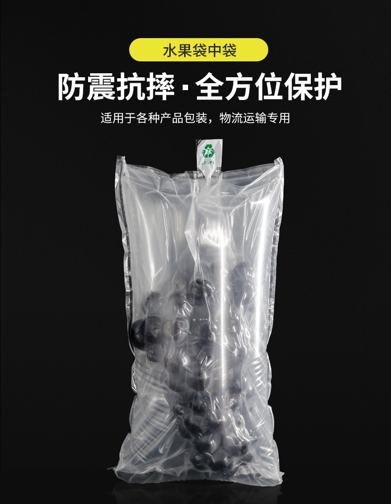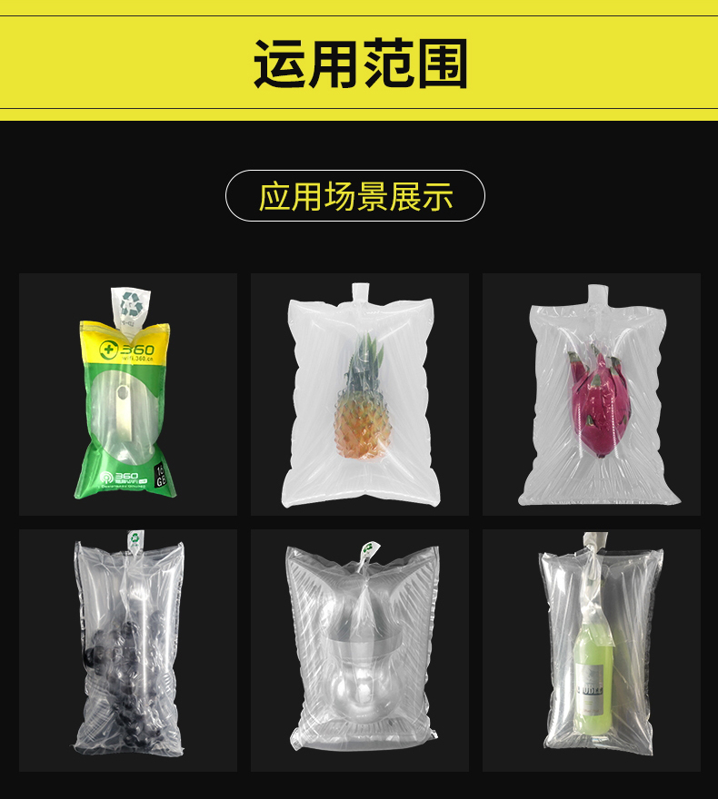 袋中袋是充气袋类别中的一种更加高效防护的缓冲包装袋,是由内外两层袋子组合而成,内袋可以根据包装物的形状将物品包裹住,外袋充气将物品固定在中央,在物品收到外界的撞击或者震动时,物品在袋内不受影响,从而能够防止损坏,是针对如今快递过程中安全保障!