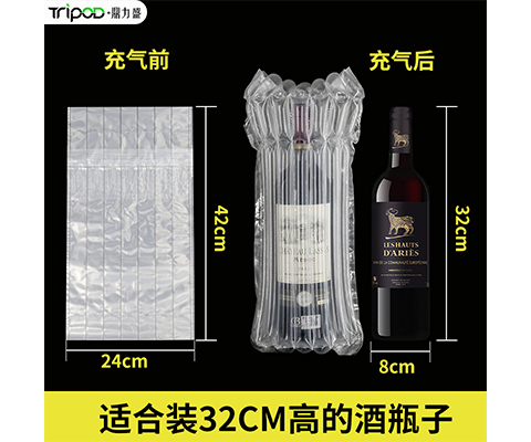 节省成本:以上说到降低红酒损坏降低商家成本,气柱袋还具有其它节省成本功能,气柱袋在充气前是一张膜一样的,平铺厚度仅是6张A纸的厚度,一卷为50米,300米包装,每次充气时可以使用全自动充气机,推荐鼎力盛(气柱充气机Tripod9800)节省人工手动充气的时间,每次充完气就可以直接包装红酒放置纸箱内。这样大大的减少人工和产品损坏的成本。